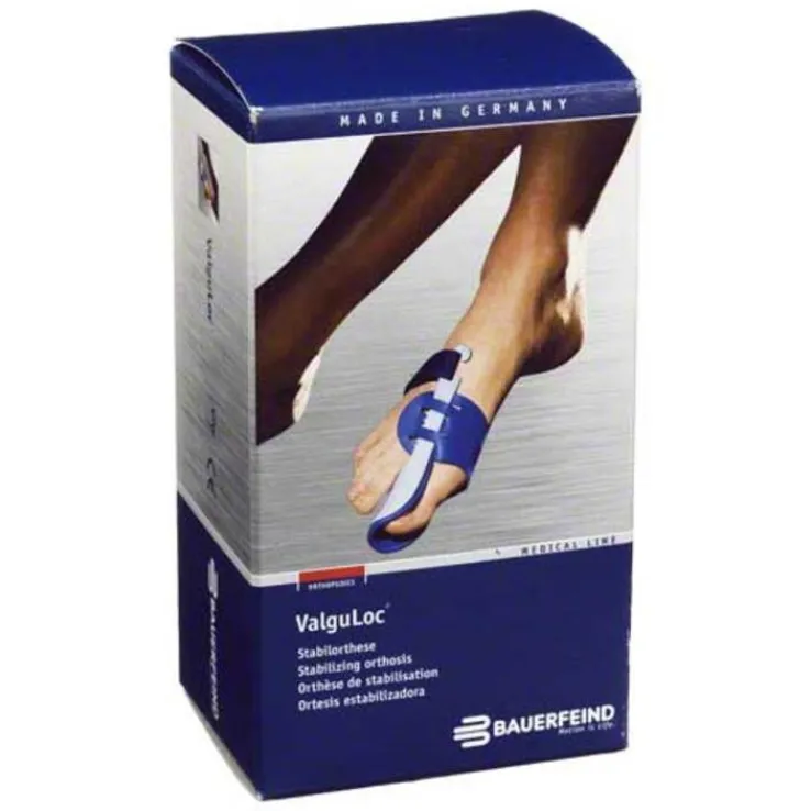 Die ValguLoc Orthese wird zur Korrektur einer Fehlstellung in den großen Zehen (Hallux valgus) eingesetzt. Sie kann im frühen Stadium oder nach einer operation eingesetzt werden. Durch ihre starre Form ist sie nicht zum gehen geeignet und wird nur Barfuß getragen.