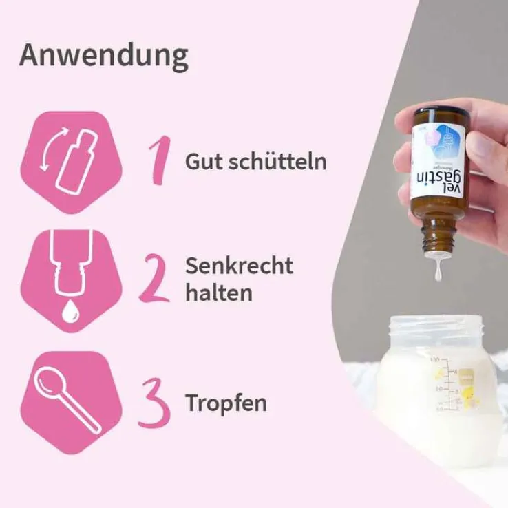 Velgastin® Blähungen Suspension ist ein Entschäumer mit dem Wirkstoff Simeticon. Die Tropfen wirken schnell und eignen sich sehr gut zur Behandlung von Blähungen bei Babys – im allgemeinen Sprachgebrauch auch Dreimonatskoliken genannt – die häufig mit Bauchschmerzen, hartem Bauch und stundenlangem Schreien einhergehen.