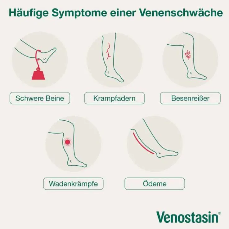 Ob nach langem Sitzen, im Sommer oder auf Reisen: bei akuten Schmerzen oder gar Wassereinlagerungen (Ödemen) brauchen die Betroffenen eine schnelle Erleichterung, gerade bei schweren oder müden Beinen. Hier kann man sehr gut mit Arzneimitteln zum Einreiben unterstützen. Das gilt besonders dann, wenn bereits ein Venenleiden besteht, bzw. diagnostiziert worden ist. Mithilfe des Rosskastaniensamen-Trockenextrakts verschafft die Venostasin® Creme Linderung bei Symptomen einer Venenschwäche wie etwa müden Beinen. Der leichte Massage-Effekt beim Auftragen verschafft eine zusätzliche Erleichterung für geschwollene und schwere Beine. Für Patienten mit empfindlicher und rissiger Haut ist Venostasin® Creme die richtige Empfehlung, sie bietet zusätzliche Pflege und hält die Haut elastisch und geschmeidig. Das ist besonders dann von Vorteil, wenn Betroffene aufgrund ihrer Venenschwäche Kompressionsstrümpfe tragen.