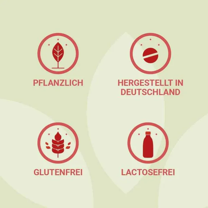 Sonstige Bestandteile: Maltodextrin, Hochdisperses Siliciumdioxid, Raffiniertes Rapsöl, Gelbes Wachs, Hydriertes Sojaöl, Partiell hydriertes Sojaöl (DAB), Phospholipide aus Sojabohnen, Gelatine, Glycerol 85 %, Lösung von partiell dehydratisiertem Sorbitol (0-6% D-Mannitol, 25-40% Sorbitol, 20-30% Sorbitan, 12,5-19% höhere Polyole – Gemisch) (Ph. Eur.), Eisen(III)-oxid (E172), Eisenoxide und -hydroxide (E172)