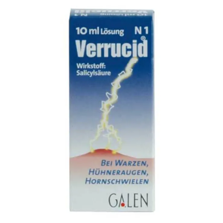 Verrucid Lösung wird angewendet als Schälmittel bei Verhornungsstörungen durch Warzen sowie bei Hühneraugen und Hornschwielen.