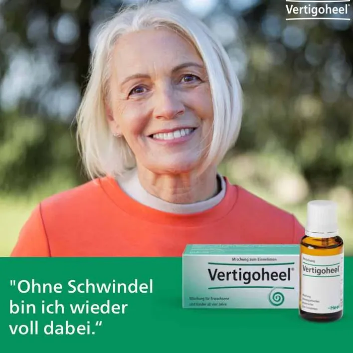 Vertigoheel® ist ein homöopathisches Arzneimittel zur Schwindel-Behandlung. Es enthält vier natürliche Inhaltsstoffe: Anamirta cocculus, Conium maculatum, Ambra grisea und Petroleum rectificatum. Vertigoheel® eignet sich als Mittel gegen verschiedene Formen von Schwindel oder Benommenheit. Es reduziert die Anzahl, Dauer und Intensität der Schwindelattacken.
