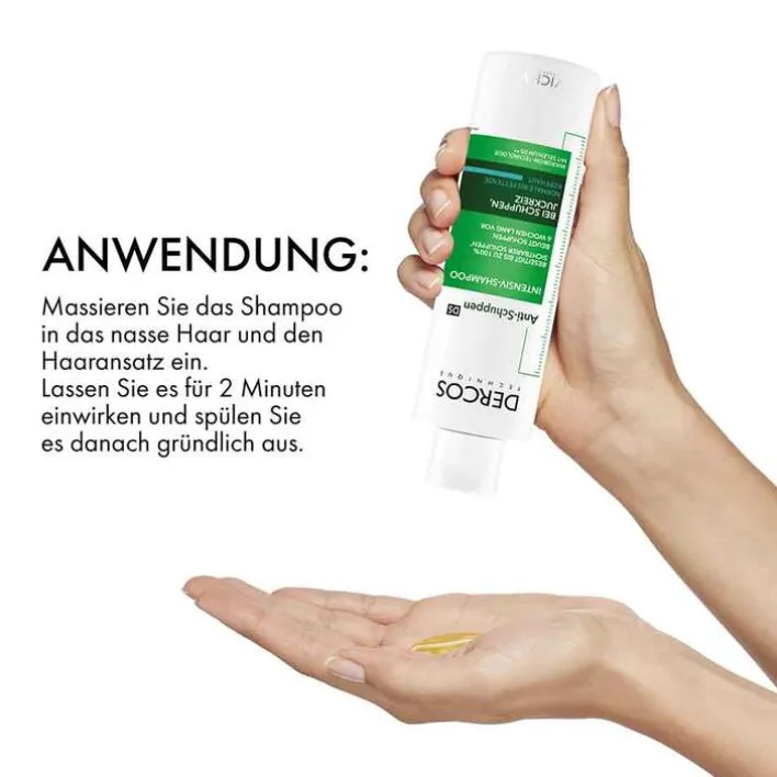 Tragen Sie das Vichy Dercos Anti-Schuppen Shampoo für normales bis fettiges Haar auf die nasse Kopfhaut auf, massieren Sie es mit sanften Bewegungen ein und lassen Sie es bei der ersten Anwendung 2 Minuten einwirken. Danach gründlich ausspülen. Bei den folgenden Anwendungen das Produkt einmassieren und dann ausspülen. In den ersten vier Wochen wird das Anti-Schuppen Shampoo 2-3 mal pro Woche als Kur angewendet. In den darauf folgenden Wochen genügt eine Anwendung pro Woche. Das Shampoo gegen Schuppen von Vichy hat eine sanfte Konsistenz und lässt sich leicht ausspülen.