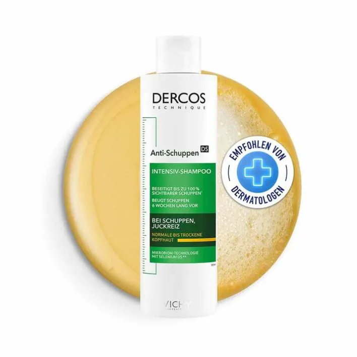 Das Vichy Dercos Anti-Schuppen Shampoo für trockenes Haar wirkt den Ursachen der Schuppenbildung auf der Kopfhaut entgegen. Es fördert das Gleichgewicht des Mikrobioms der Kopfhaut und unterstützt die Funktion der Hautschutzbarriere. Schuppen auf der Kopfhaut werden entfernt und einer erneuten Schuppenbildung entgegengewirkt.