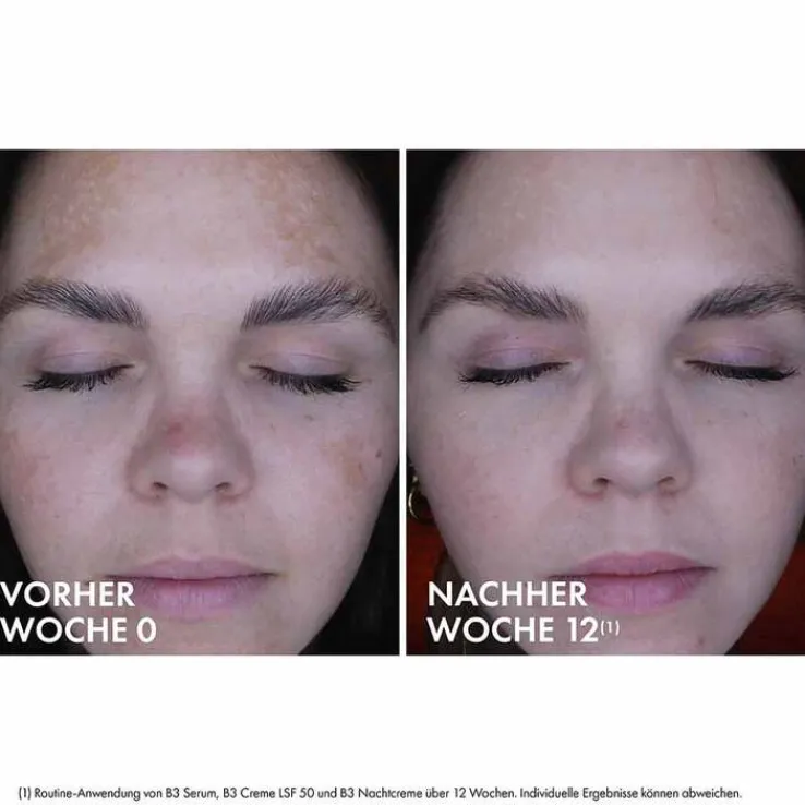 98 % der Tester:innen bestätigen ein gemildertes Erscheinungsbild ihrer Pigmentflecken bei Anwendung der Liftactiv B3 Gesichtspflegeroutine mit dem Liftactiv B3 Serum, der Liftactiv B3 Anti-Pigmentflecken LSF 50 Gesichtscreme und der Liftactiv B3 Retinol Anti-Pigmentflecken Gesichtscreme für die Nacht.*