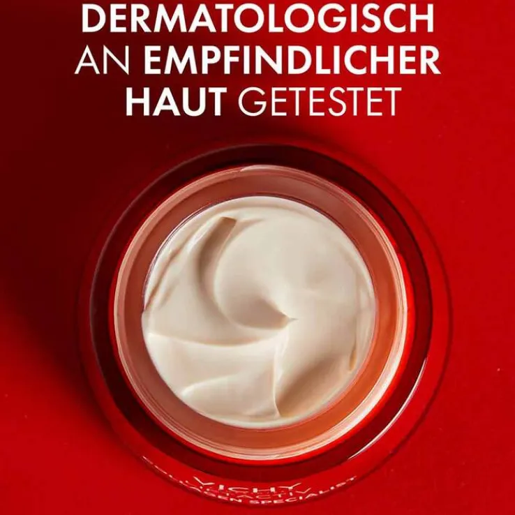 Die Gesichtskonturen wirken redefiniert und die Haut erscheint straffer, jugendlicher sowie ebenmäßiger. Die Anti-Aging Gesichtspflege für reife Haut besitzt eine effektive Formel mit hoher Konzentration an natürlichen Aktivstoffen: Anti-Aging-Biopeptide und antioxidatives Vitamin C stimulieren die hauteigene Kollagen-Produktion und fördern die Zellerneuerung. Der Kollagenverlust in der Haut wird kontrolliert. Vulkanisches Wasser aus Vichy mit 15 Mineralien stärkt die Hautbarriere.