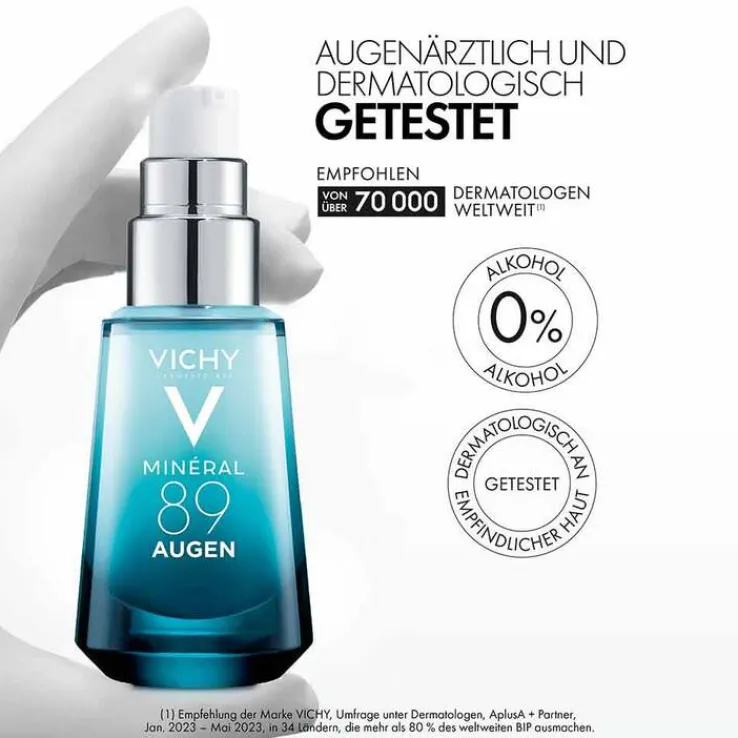 Die Wirksamkeit der Mineral 89-Augenpflege wurde über einen Zeitraum von vier Wochen unter dermatologischer Kontrolle wissenschaftlich nachgewiesen.
