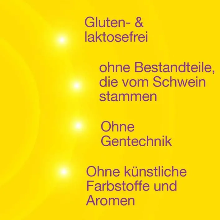 - frei von Gluten und Laktose und Inhaltsstoffen, die vom Schwein stammen