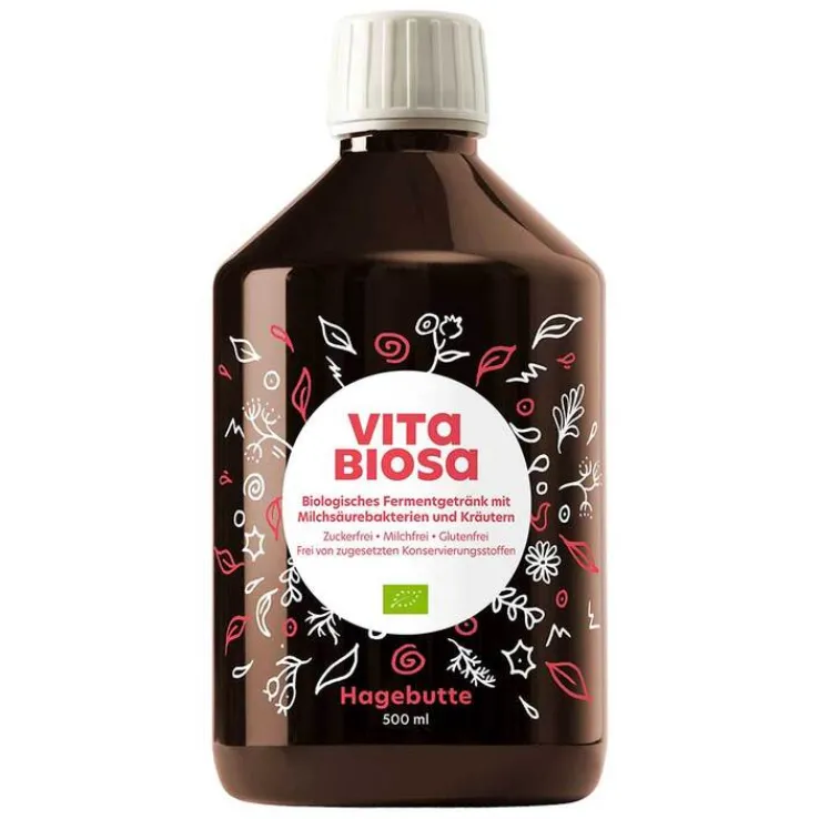 Vita Biosa Hagebutte ist ein lebendiges Produkt. Frisch abgefüllt enthält es mindesten 100 Millionen aktive Mikroorganismen pro ml. Es ist zuckerfrei, da die Mikroorganismen während der Fermentation den gesamten Zucker abbauen. Vita Biosa Hagebutte ist frei von Konservierungsmitteln, Milch und Lactose.