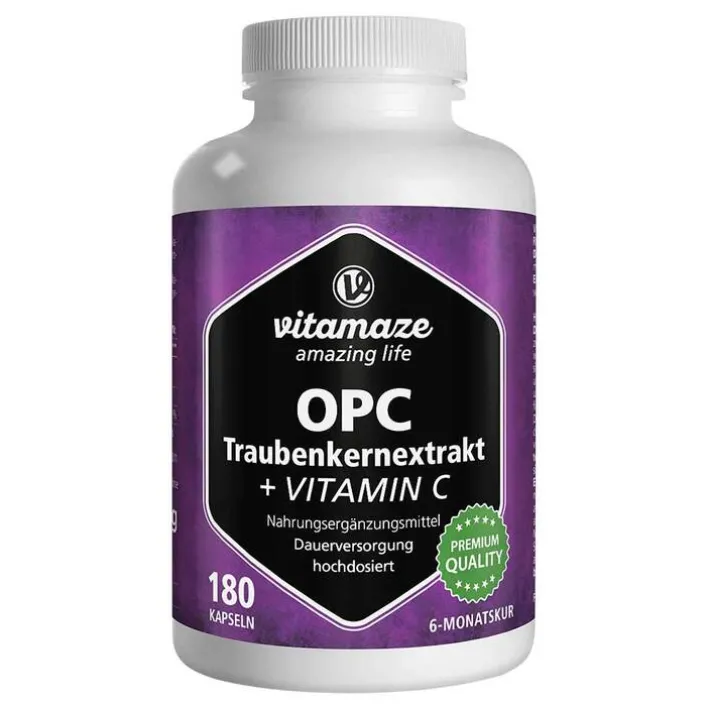 Vitamaze OPC Traubenkernextrakt hochdosiert + Vitamin C Kapseln, 180 St> Opc
