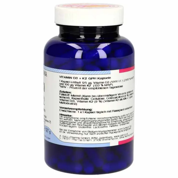 - Mit 100 µg Vitamin K2 (Menaquinon-7) und 125 µg Vitamin D3