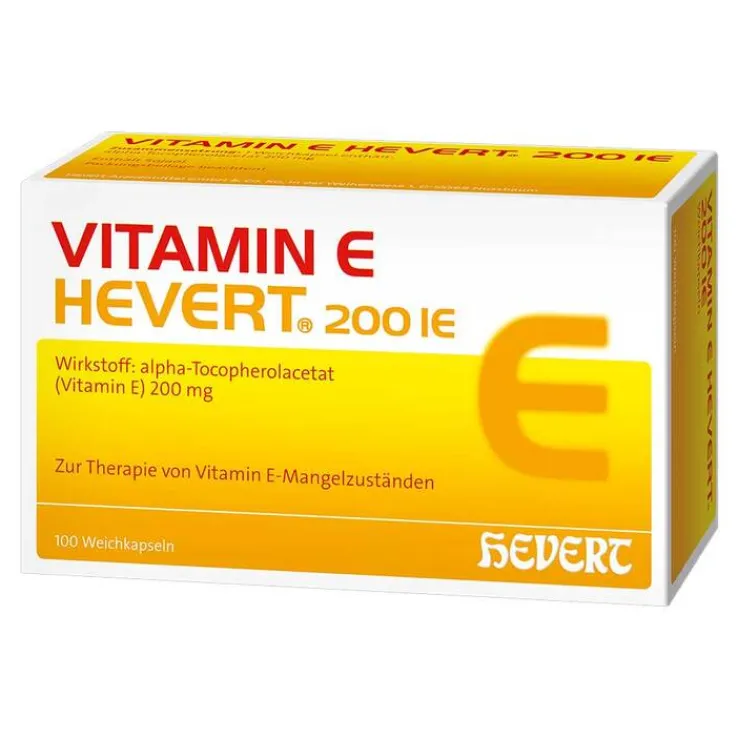 Vitamin E Hevert 200 IE Wirkstoff: alpha-Tocopherolacetat (Vitamin E). Anwendungsgebiete: Behandlung eines Vitamin E-Mangels. Vitamin E Hevert 200 IE ist nicht geeignet zur Therapie von Vitamin E-Mangelzuständen, die mit einer gestörten Aufnahme von Vitamin E aus dem Darm einhergehen. In diesen Fällen stehen parenterale Zubereitungen zur Verfügung. Zu Risiken und Nebenwirkungen lesen Sie die Packungsbeilage und fragen Sie Ihre Ärztin, Ihren Arzt oder in Ihrer Apotheke.