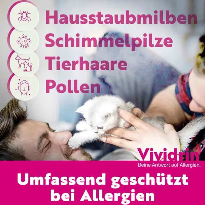 In Deutschland leiden rund 23 Millionen Menschen unter einer Allergie. Eine allergische Reaktion kann saisonal als Heuschnupfen durch Blütenpollen oder ganzjährig durch Allergene wie z. B. Hausstaub oder Tierhaare ausgelöst werden. Die typischen Symptome umfassen starken Niesreiz sowie eine verstopfte oder laufende Nase. Vividrin® Azelastin Nasenspray mit dem bewährten Wirkstoff Azelastin bietet schnelle Hilfe bei akuten Nasenbeschwerden im Zusammenhang mit Heuschnupfen und Allergien. Das Arzneimittel ist gut verträglich und kann bei saisonalem Heuschnupfen genauso wie bei nicht-saisonalen Allergie-Schüben verwendet werden. Das Nasenspray ist frei von Konservierungsmitteln und eignet sich für Erwachsene und Kinder ab 6 Jahren.