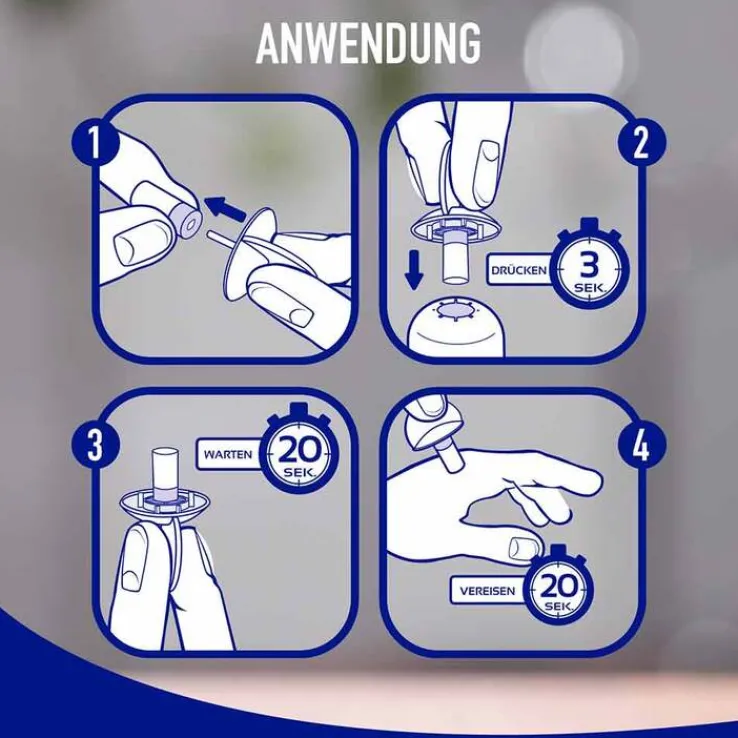 Für eine schnelle Behandlung in 3-20-20 Sekunden: 3 Sekunden vorbereiten, 20 Sekunden warten, 20 Sekunden vereisen.