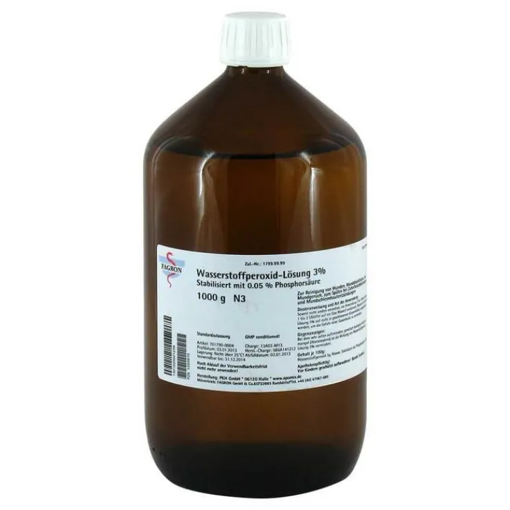 Wasserstoffperoxid Lösung 3% Wirkstoff: Wasserstoffperoxid-Lösung 3%. Anwendungsgebiete: Mund-/ Rachentherapeutika und Zahnpflege. Zur Therapie von infizierten und nicht infizierten Hautläsionen. Zu Risiken und Nebenwirkungen lesen Sie die Packungsbeilage und fragen Sie Ihre Ärztin, Ihren Arzt oder in Ihrer Apotheke. Dr. Gerhard Mann. Stand 12/2020