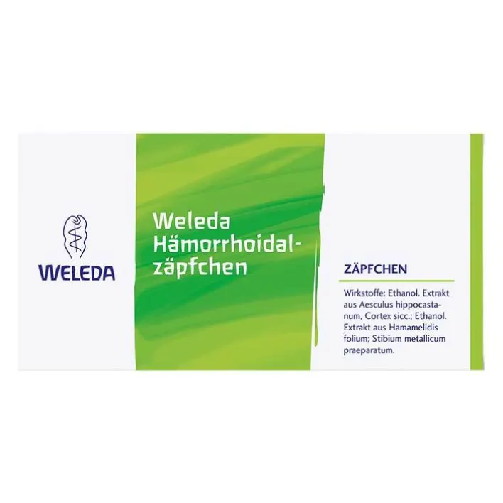 Weleda Hämorrhoidalzäpfchen Anwendungsgebiete: Gemäß der anthroposophischen Menschen- und Naturerkenntnis. Dazu gehören: Innere und äußere Hämorrhoiden, Hauteinrisse (Fissuren), Afterentzündung (Anitis), Entzündung im Mastdarmbereich (Proktitis), Juckreiz am After (Pruritus ani). Zu Risiken und Nebenwirkungen lesen Sie die Packungsbeilage und fragen Sie Ihre Ärztin, Ihren Arzt oder in Ihrer Apotheke. Weleda AG, Schwäbisch Gmünd