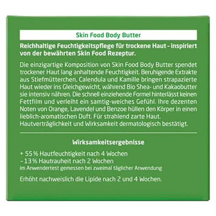 Skin Food Body Butter nach Bedarf auf die trockene Haut auftragen und sanft verteilen.