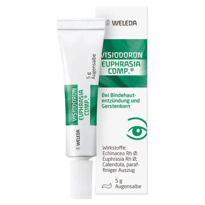 Visiodoron Euphrasia comp.® Augensalbe Gemäß der anthroposophischen Menschen- und Naturerkenntnis. Dazu gehören: Bindehautentzündung und Gerstenkorn (Hordeolum). Dosierung und Art der Anwendung Falls vom Arzt nicht anders verordnet, mehrmals täglich in den Bindehautsack einbringen. Zu Risiken und Nebenwirkungen lesen Sie die Packungsbeilage und fragen Sie Ihre Ärztin, Ihren Arzt oder in Ihrer Apotheke. Weleda AG, Schwäbisch Gmünd