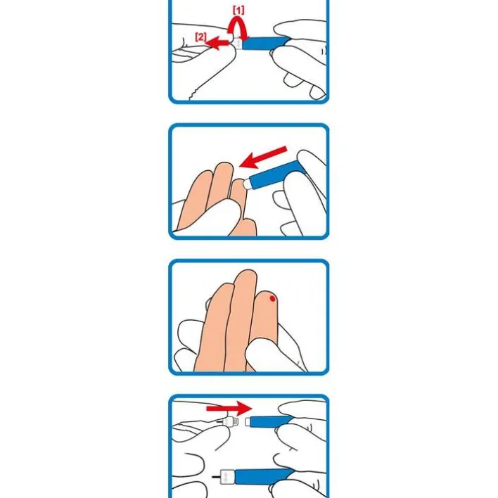 wellion® Sicherheitslanzetten haben eine vorgegebene Stechtiefe, die Lanzette ist im Inneren des Gehäuses sicher verborgen. Ideal für Nadelphobiker, ältere Menschen, Menschen mit reduzierter Feinmotorik oder Sehproblemen, da das Hantieren mit der Stechhilfe komplett entfällt.