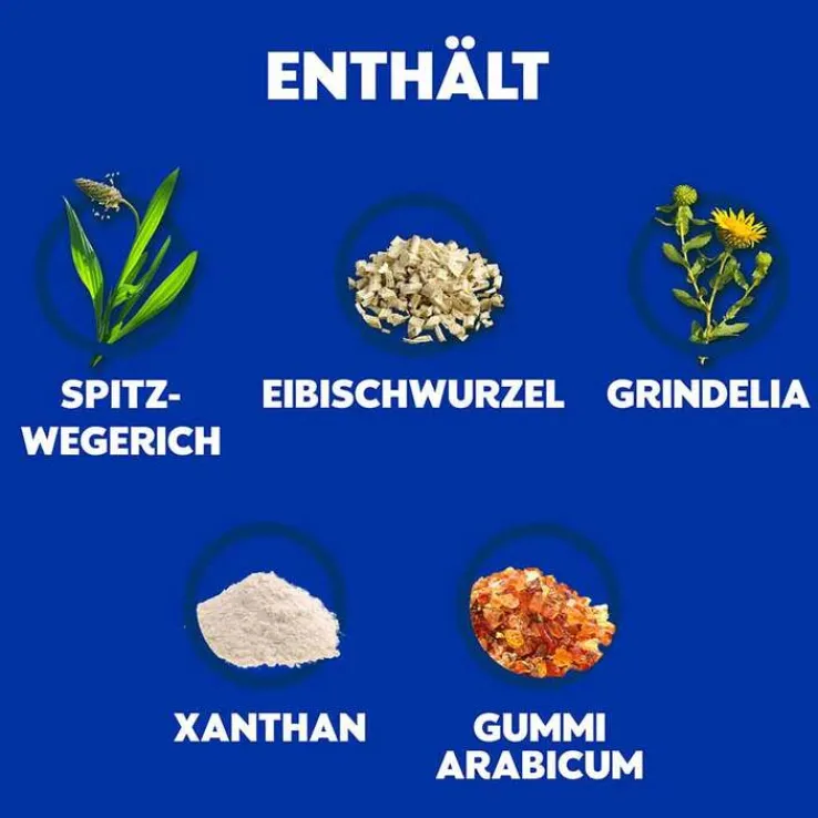 - Enthält Spitzwegerich, Grindelia und Eibischwurzel, die zur Beruhigung des gereizten Rachens beitragen