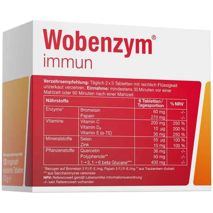 Allergiker-Hinweis: Dieses Produkt enthält Stoffe aus Ananas und Papaya. Wobenzym immun ist laktosefrei (ohne Milchzucker).