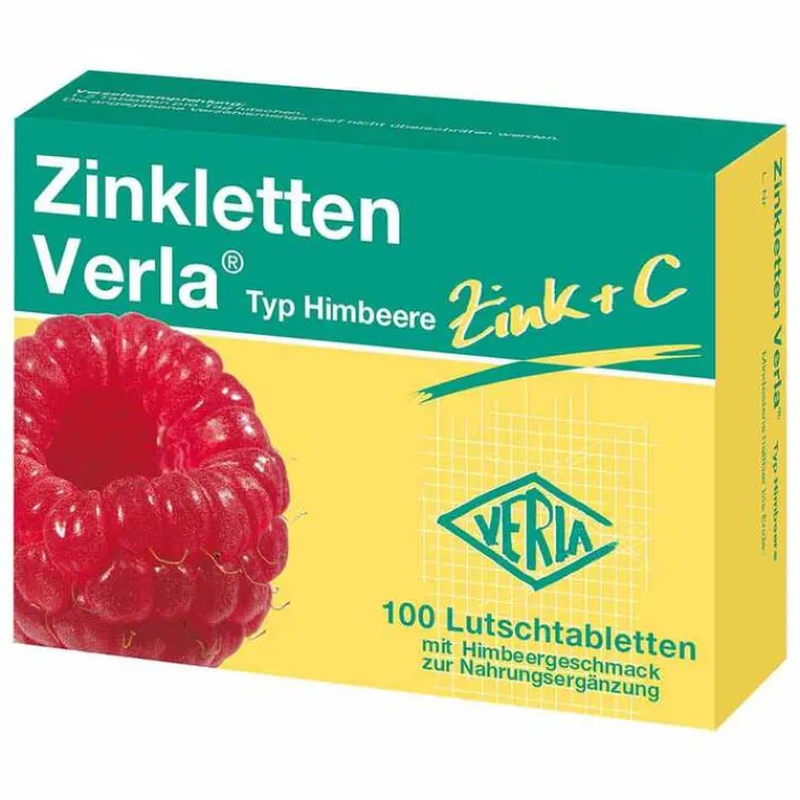 Zinkletten Verla enthalten die sinnvolle Kombination aus dem Spurenelement Zink und Vitamin C. Die Lutschtabletten Zinkletten Verla gibt es in den Geschmacksrichtungen Himbeere und Orange. Hinweis: Zinkletten Verla sind nur in der Apotheke erhältlich. Die Nahrungsergänzungsmittel sind kein Ersatz für eine abwechslungsreiche, ausgewogene Ernährung und gesunde Lebensweise. Zinkletten Verla sind glutenfrei und enthalten keine Lactose.